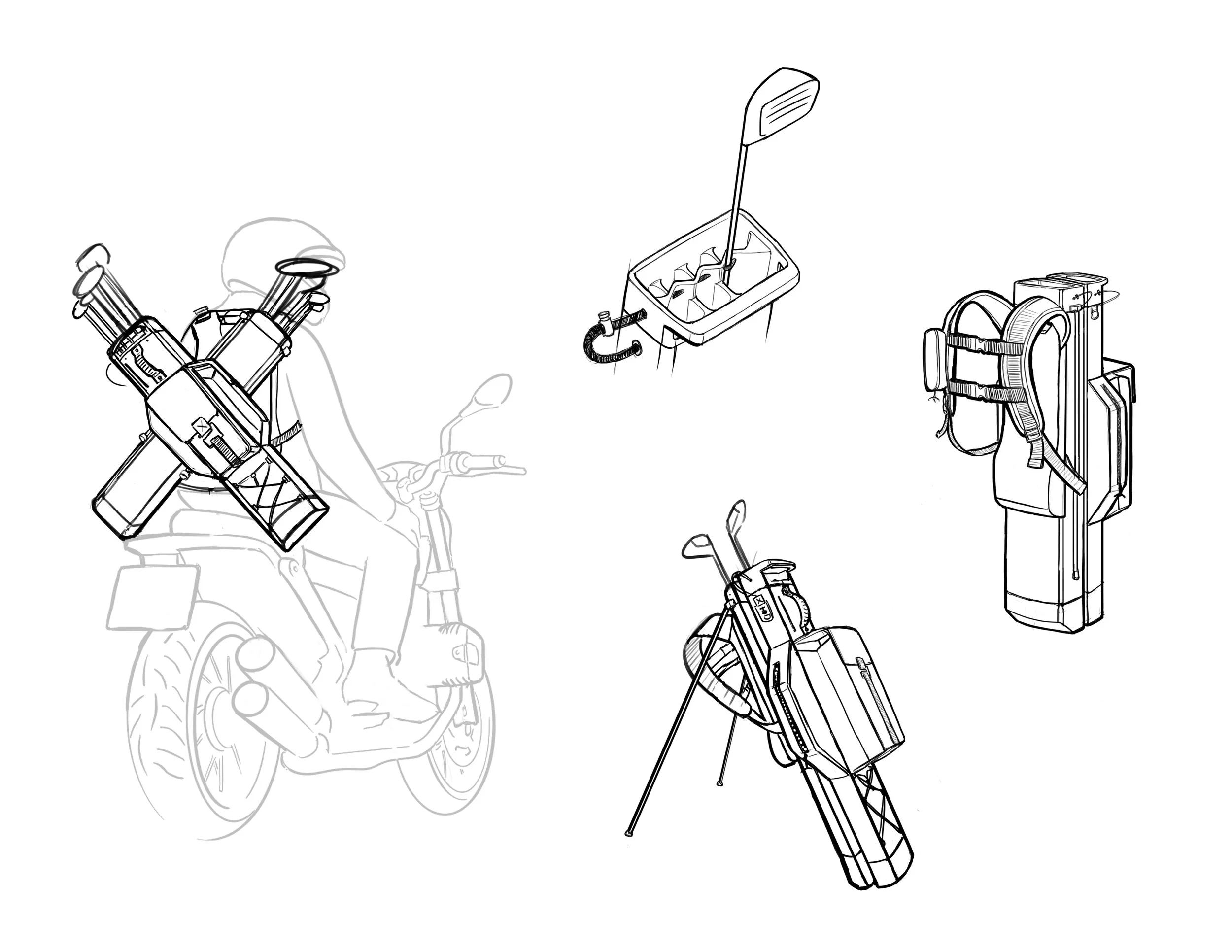 The Genin started with a napkin sketch from our client and was developed into the golf solution for motorcyclists and bicyclists.